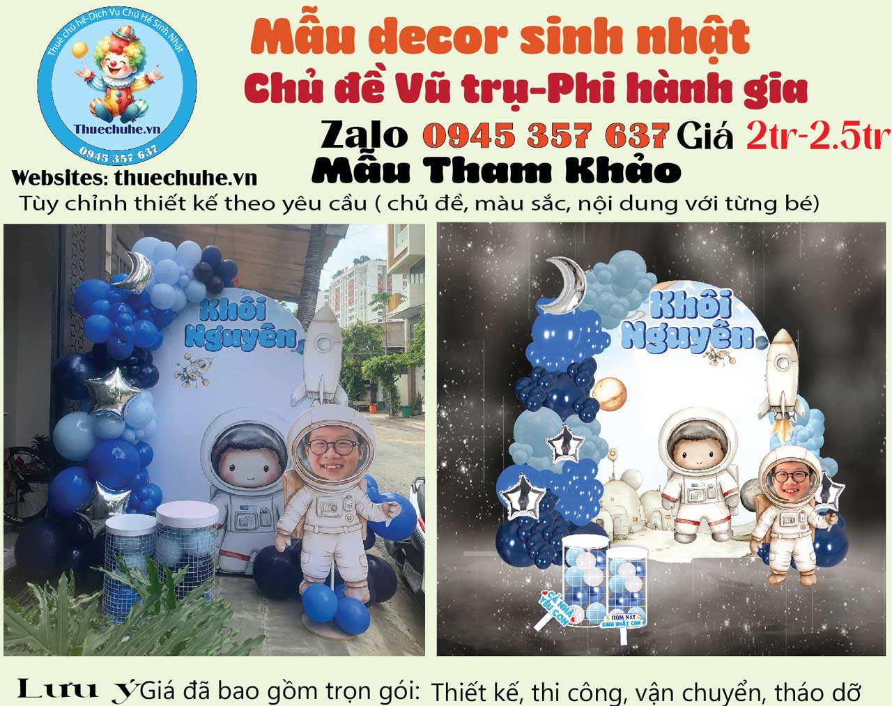 - Combo trang trí + chú hề trọn gói.