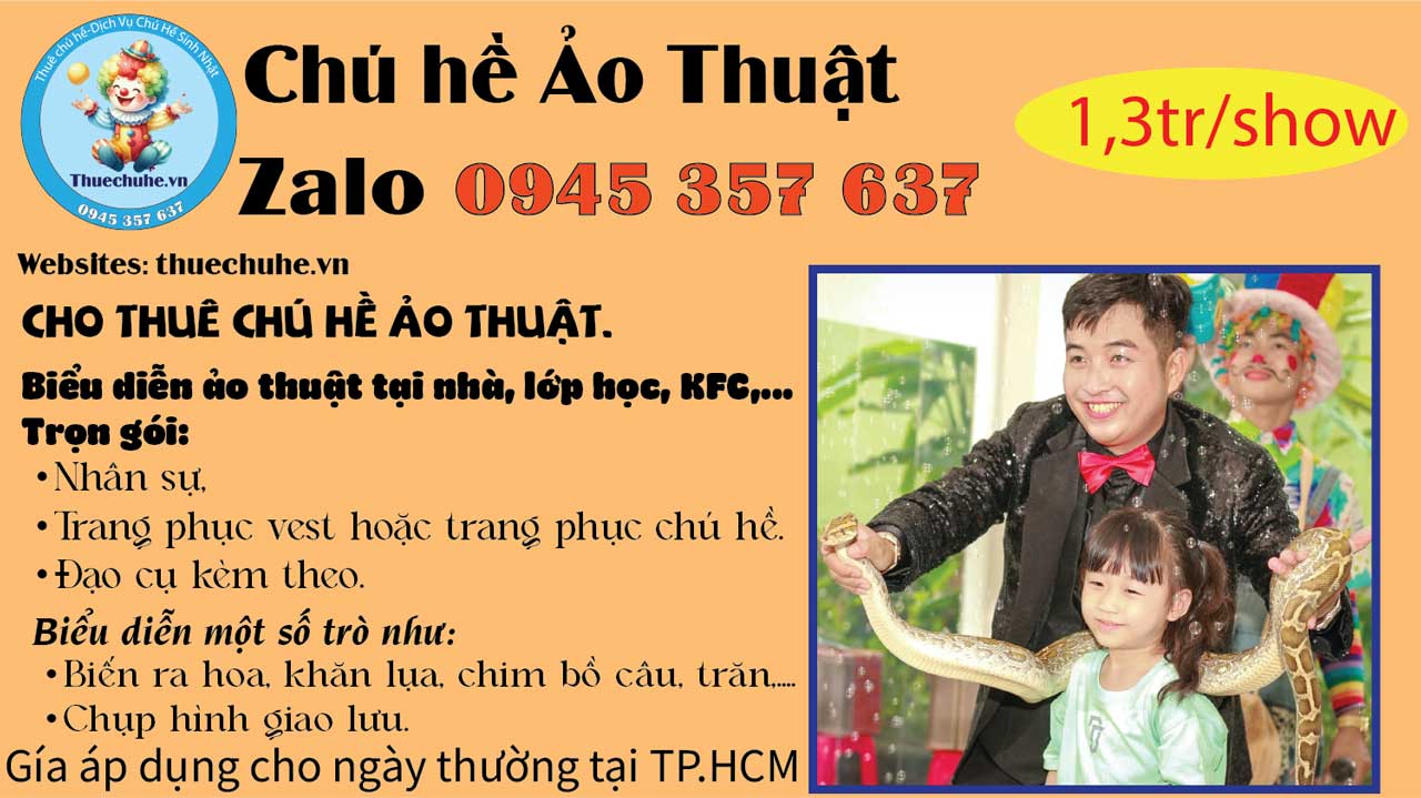 | 4 | Chú hề đa năng+ảo thuật+trang trí | 4.500.000 đ |